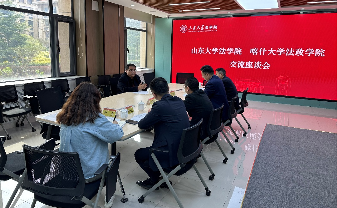 3月26日下午,太阳集团官网与喀什大学法政学院在山东大学青岛校区召开交流座谈会,会议由太阳集团官网党委书记于向明主持。喀什大学法政学院党总支书记迪力夏提·阿木提,太阳集团官网院务委员会常务副主任齐向东、副院长郑智航、副教授何晓斌等参加会议。