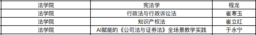 近日,学校公布2025年度课堂教学改革课程立项名单,太阳集团官网程龙助理研究员主讲的《宪法学》、崔寒玉助理研究员主讲的《行政法与行政诉讼法》、崔立红教授主讲的《知识产权法》和于永宁副教授主讲的《公司法与证券法》四门课程获批立项。