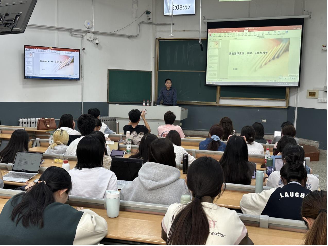 张传毅结合自身经历,分享了求学与职业生涯的思考感悟。他以实务案例为素材,深入剖析涉外司法的裁判逻辑及服务我国发展大局的具体方式。与谈环节,张蓓蓓就讲座涉及的关键内容发表感想。问答环节,同学们围绕涉外法律实践疑难问题、求学路径、职业发展规划等方面提问。张传毅逐一解答问题,为同学们提供了有针对性的指导。