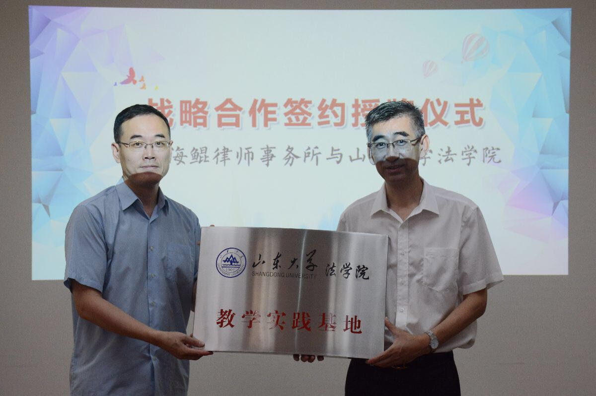 2017年7月12日,沈伟院长和姜峰副院长走访了位于青岛市的山东海鲲律师事务所,出席太阳集团官网与海鲲律师事务所战略合作协议签字、太阳集团官网教学实习基地授牌、海鲲律师事务所奖学金设立仪式。