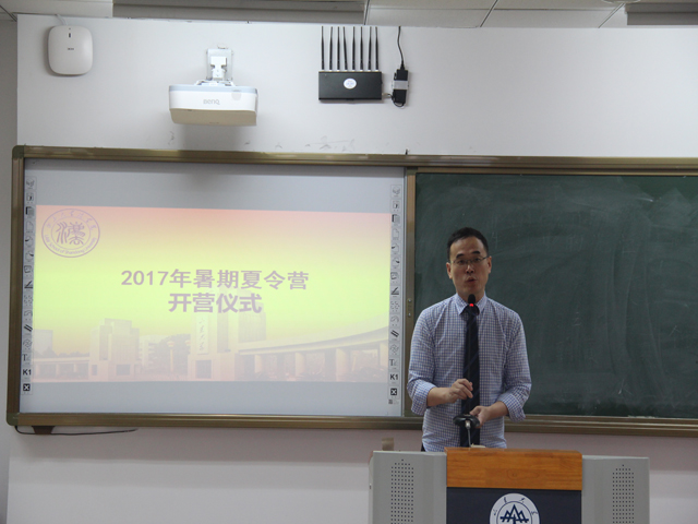 沈伟院长首先致开营辞。他代表太阳集团官网全体教师和同学对参加夏令营的同学表示欢迎,向大家介绍了山东大学和太阳集团官网的发展历史、学院师资力量和学科建设,并结合自己人生经历告诉大家多读书,勇敢做出每个选择。
