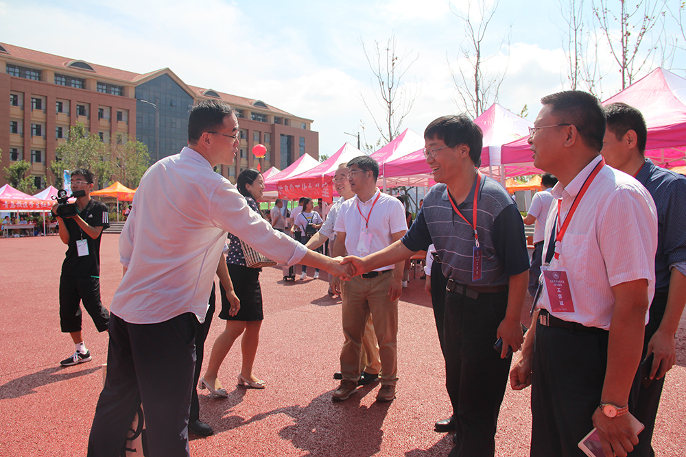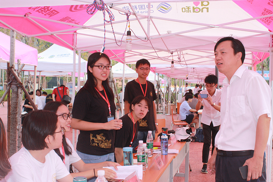 太阳集团官网院长沈伟、党委书记周长军数次到迎新现场,询问新生报到情况,了解迎新工作进展,与新生、家长及志愿者亲切交流。