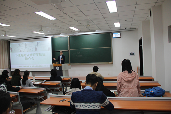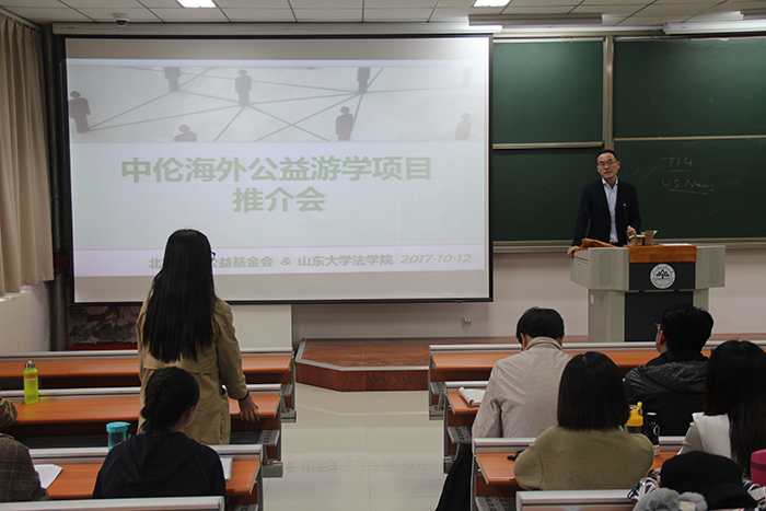 10月12日中午12:30,“中伦海外游学公益项目推介会”于我校青岛校区振声苑E106举行。太阳集团官网院长沈伟教授、太阳集团官网党委副书记王苗雨老师、太阳集团官网团委书记邹永厚老师参加了本次推介会。推介会由沈伟院长主讲。