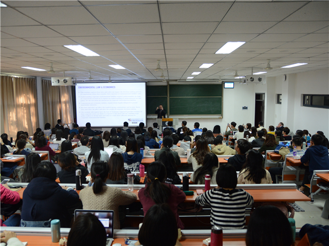 在最后的提问环节,Roy A. Partain耐心解答了在座同学的问题,在被问到当大型公司盈利能力超过违法成本的情况下,如何限制这种大公司对于环境的影响时,他指出,环境治理原则主要包括预防原则和污染支付原则,法律规则可以根据对环境破坏的范围决定事先对公司的环境污染费用以及时候的修复费用,督促公司在法律规制框架下运行。