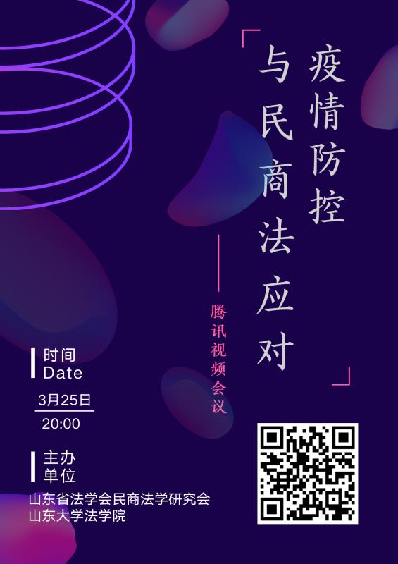 20203月25日,山东省法学会民商法学研究会和太阳集团官网以线上方式联合主办“疫情防控与民商法应对”专题会议。会议由山东省法学会民商法学研究会会长、太阳集团官网副院长张海燕教授主持。太阳集团官网副院长满洪杰教授,中国海洋大学太阳集团官网瞿灵敏副教授,山东省法学会民商法学研究会副会长、太阳集团官网于永宁副教授,山东省律师协会副会长、山东达洋律师事务所主任孙瑞玺律师,山东省法学会民商法学研究会副会长、太阳集团官网张平华教授,山东省法学会民商法学研究会副会长、烟台大学太阳集团官网刘经靖教授参加会议并作了主题发言。太阳集团官网院长周长军教授及百余位专家学者、法学同行全程参加了会议。