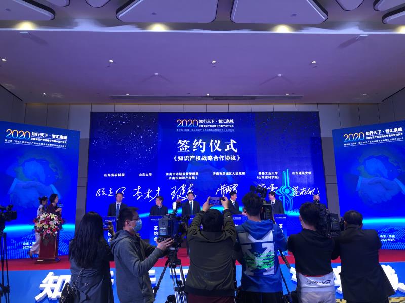 4月26日下午,在山东大学副校长李树才带领下,崔立红教授参加了“2020知行天下•智汇泉城”:济南知识产权战略合作集中签约仪式暨济南(历城)国际知识产权高端服务业集聚区项目启动仪式。李树才副校长代表山东大学与济南市市场监督管理局(市知识产权局)签订《知识产权战略合作协议》,崔立红教授与其他三所驻济高校的专家,受聘为济南市知识产权智库专家。崔立红教授随后还参加了“知识产权战略实施与创新驱动发展座谈会”,就济南市的创新环境与创新文化、知识产权运营与产业化、知识产权的行政与司法保护等问题,进行了深入交流和探讨。参加座谈会的有济南市市场监管管理局(市知识产权局)、泉城海关、莱芜海关等政府部门;山东大学、齐鲁工业大学(山东省科学院)、山东省农科院、山东建筑大学等驻济高校院所;知识产权服务机构和企业代表。